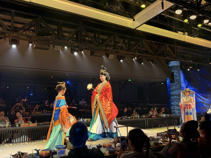 因此,蜀宴赋进入上海后,并未照搬成都的成熟模式,而是进行了全方位的升级与适配:舞台按照专业剧场标准打造,配备可升降机制、纱幕互动和全息光影,让演艺体验更具沉浸感;节目方面,除了保留《鸿门宴》《洛神赋》等经典剧目,还因地制宜加入“春申君”等与上海相关的定制主题服饰与剧目,贴合江南文化基因;餐饮上,厨师团队在坚守川菜二十四味特色的基础上,适当调低辣度,微调口味以适配上海消费者偏清淡的饮食偏好。
