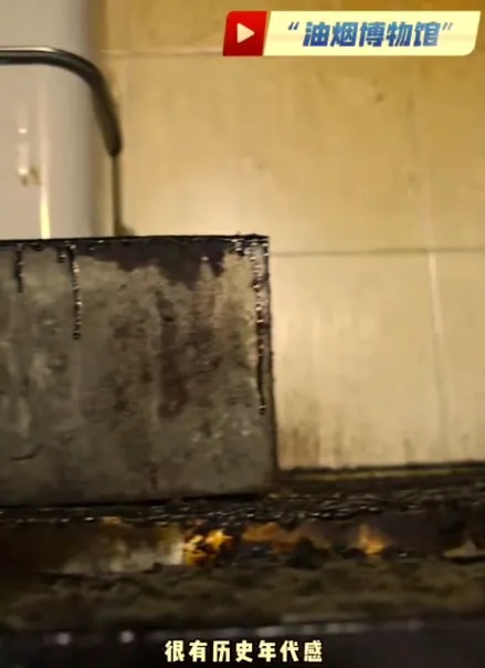油烟设备和墙壁上覆盖着厚厚的陈年油腻检查人员:你们到底清洁过吗?