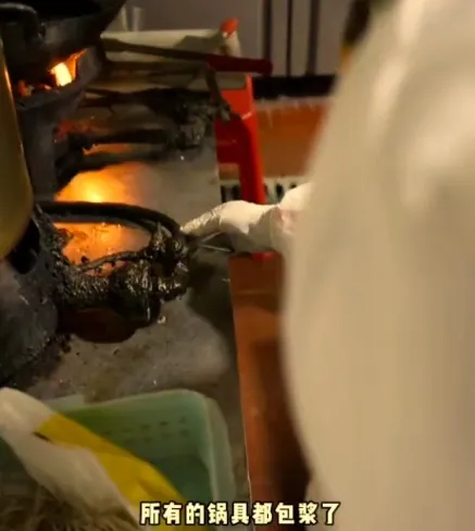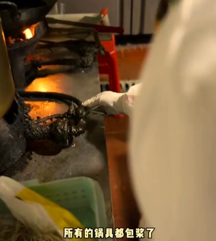 烧菜的锅具统统脏得包浆了问店长:上次是什么时候清洗的?店长答:我来的时候就这样了……这锅具的“工龄”比店长还长!