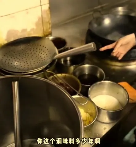 后厨脏乱情况令检查人员咋舌灶台上放调料的容器脏到发黑看上去难以形容