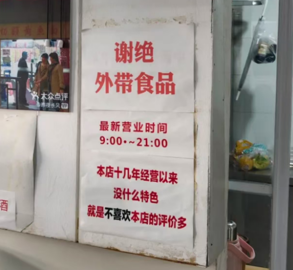 不少吃过的顾客表示老板态度很拽不接受客人差评店里墙上贴着不少“提示”有点PUA顾客的意思