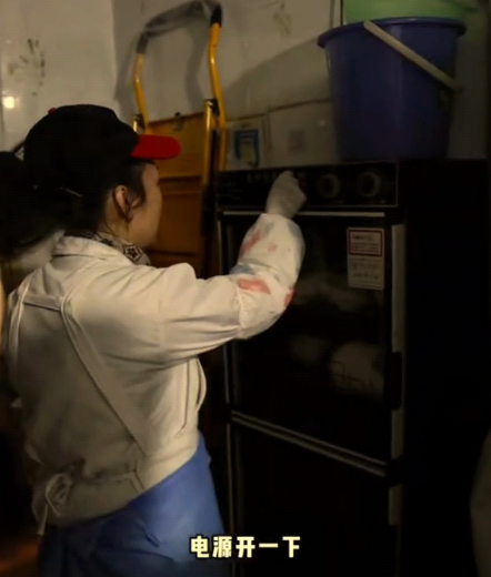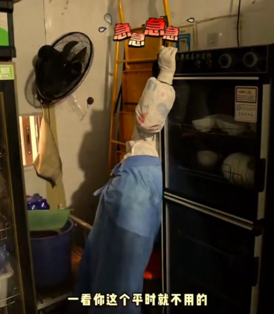 然后令人无语的一幕出现了店长支支吾吾开始用力挪动硕大的消毒柜急急忙忙地找后面的插头但是找了半天居然没找到一看就是平时不开的