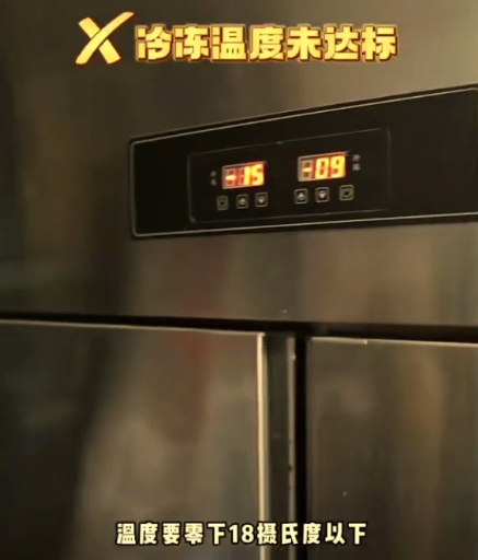 检查人员指着里面厚厚的冰霜问到:这有多久没清理过了?店长急忙辩称:清理过的,是冰箱有问题。