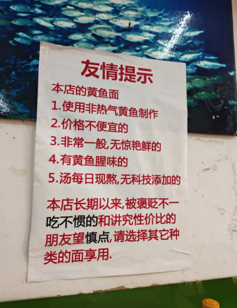 这家网红的黄鱼面馆你吃过吗?小侬提醒大家:在外用餐一定要先看墙上的“食品安全监督信息公示栏”绿脸笑脸表示良好黄色平脸表示一般红脸哭脸表示较差