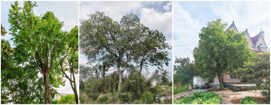 从左到右依次为:2095号古树银杏、2096号古树朴树、2097号古树枣树,均是“百岁老人”。