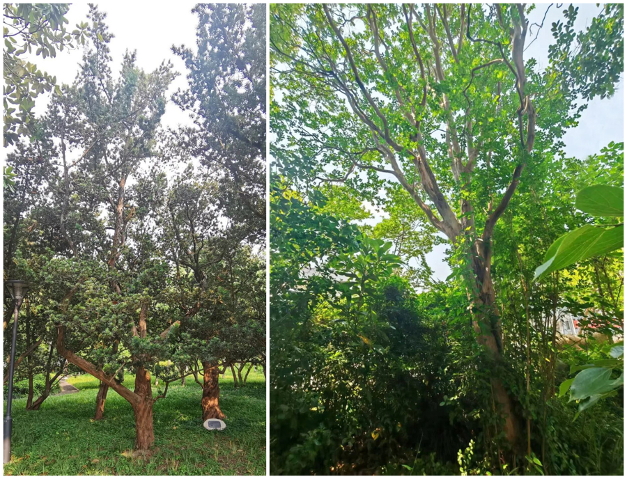 新增的2株古树后续资源:左图为静安区共和新路1555号的罗汉松,右图为松江区中山东路东果子弄2号的紫薇。