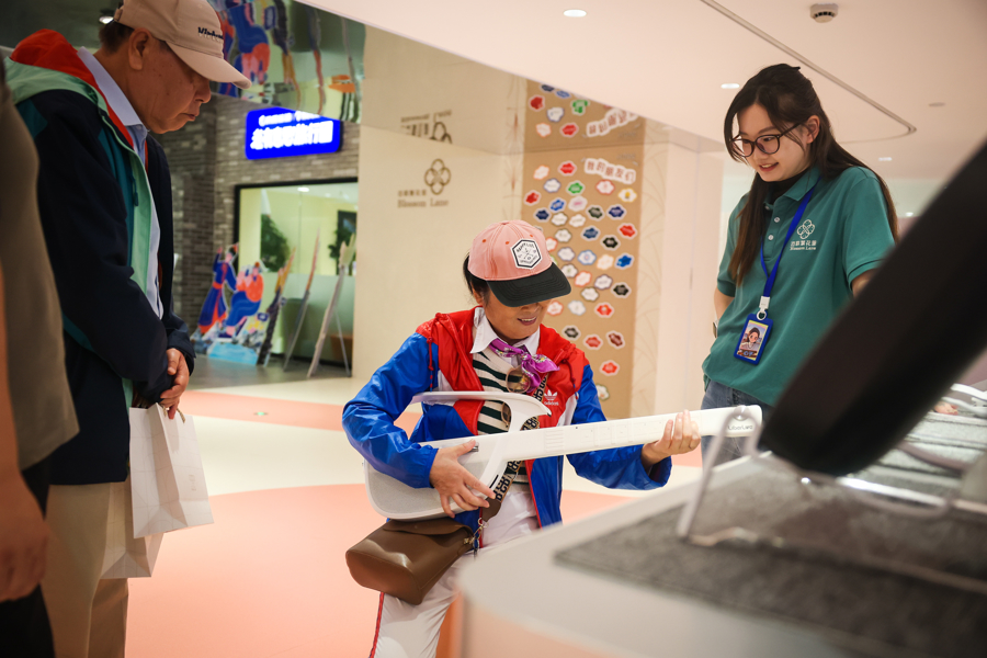 与社区小店的温情路线不同,南京路步行街第一百货七八楼的“百联繁花里”主题空间,则以7000平方米的大空间,打造科技与潮流融合的银发消费场景。