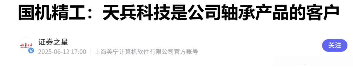 天兵科技供应商:公司专注于高、中端轴承产品的研发和生产,拥有较强的综合技术实力,形成了严格的质量保证体系。天兵科技是公司轴承产品的客户。