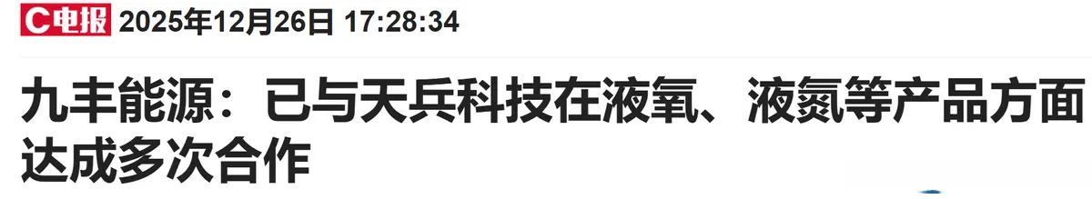 天兵科技供应商:公司已与天兵科技在液氧、液氮等产品方面达成多次合作。