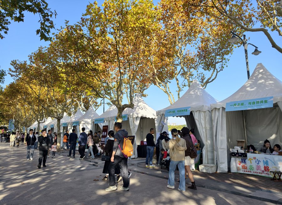 在湖滨大道,持续两天的市集设置了义卖区,在这里,每件工艺品都凝结着创作者的心意,义卖收入所得将捐赠给花木公益基金,让现场的游客消费即公益。市集还汇聚了美食、园艺、咖啡及现代生活方式等多个品类,满足不同游客的消费需求。