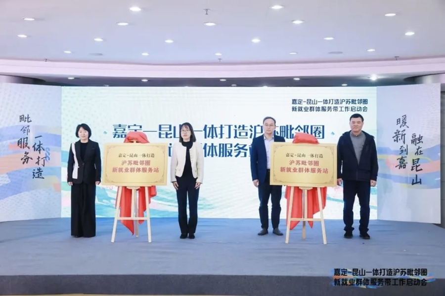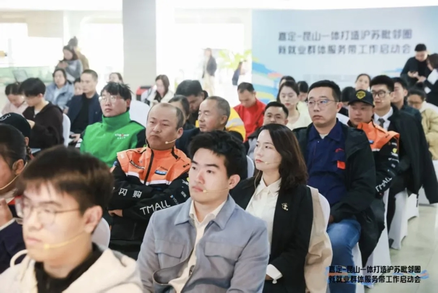 11月27日,嘉定—昆山一体打造沪苏毗邻圈新就业群体服务带工作启动会在上海汽车金融港举行。来自嘉定、昆山两地的相关部门、企业代表、党群服务站点负责人、新就业群体及公益商户齐聚一堂,共同见证两地携手构建服务新就业群体的区域协作新格局。